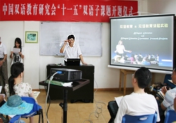 参加第28、29期双语师资培训的老师和学校的领导们学习热情高涨,不仅白天上课,而且有时晚上还特邀研究会的同志与他们深入座谈双语教育的具体问题。学员们觉得,开展双语教育实验,参加专业培训以及相关教育实验研究方法的培训是非常重要和必须的,他们觉得参加培训后,解决了一些长期困扰双语教学实践的问题,对今后的双语教育如何开展目标和方法更明确了,因而信心也更足了。研究会领导们表示,将继续通过培训、研修、网络信息传递、研讨会、教学观摩、协助编写校本教材等形式,为中小学双语教育以及相关课题研究的开展提供更好的服务。□