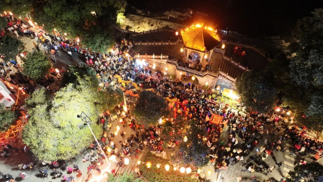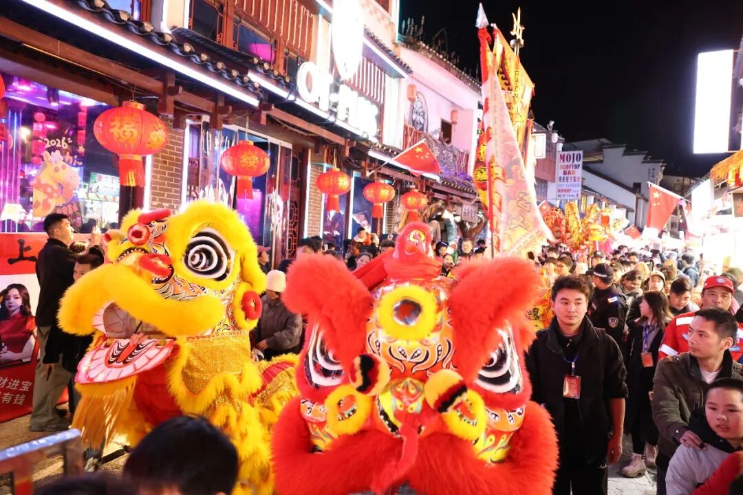 As night fell, the eye-dotting ceremony for the dragon and lion took place at Longtoushan Pier. Following this, a parade featuring the Jinbao Middle School Teachers and Students Dragon and Lion Team, along with Chinese and international tourists, wound its way along the main route of West Street. The agile dragons and lions meandered through the ancient alleyways, their vibrant colors complementing the festive lanterns along the path. This created a flowing spectacle of "Dragons Roaming the Landscape, Lanterns Reflecting Global Friendship," showcasing the charm of traditional folk customs and the vibrant energy of international interaction. Jiang Tengfei, a tourist from Mexico, said, "I think these activities are fantastic. I really enjoy the dragon and lion dances." Ivan Ye, a Chinese-Canadian visitor, exclaimed excitedly, "This event is so lively, with so many people on the streets. I've never seen such a bustling scene before."