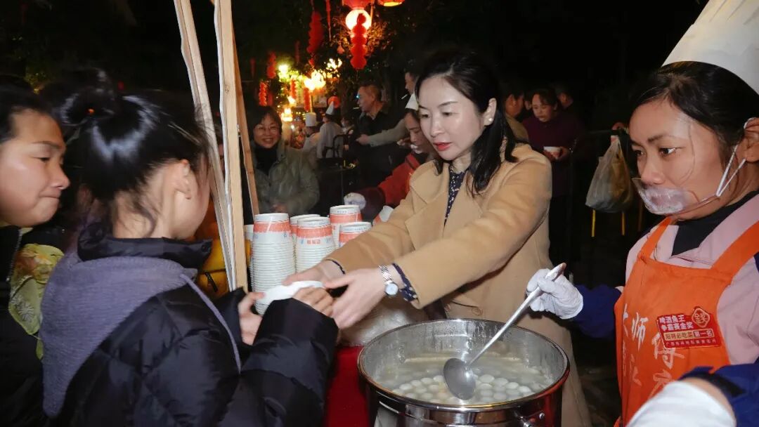 | 县委副书记、县长黄小雪向市民游客派送汤圆 |