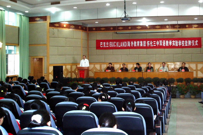 2004年10月20日,香港巴克兰海外教育集团怀化三中双语实验学校举行挂牌仪式,巴克兰海外教育集团中国总经理欧文先生向怀化三中校长刘正楷授牌,怀化市教育局局长石玉海到会祝贺。